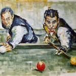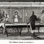 Algemene BiljartgeschiedenisDe wortels van de biljartsport gaan diep terug in de tijd en zijn wijdvertakt geraakt. De moeder aller biljartdisciplines is, zo wordt aangenomen, het Engelse Pall Mall-spel. Dat lijkt op het hedendaagse croquet en wordt gezien als de voorloper van het biljarten. Aanvankelijk werd het spel dan ook buiten gespeeld, maar na 1550 vindt het in Engeland, Frankrijk en Italië ook zijn weg binnenshuis. Het wordt dan beoefend op tafels met opstaande banden. Op de tafel treffen we in die periode nog steeds de poortjes en de koning aan. Succes heeft vele vaders. Over de oorsprong van het biljarten is dan ook een heuse verbale Engels-Franse oorlog uitgevochten. In beide landen werd geclaimd dat daar de wieg stond van de sport. Uit de term ‘billard’ leiden de Engelsen af, dat het een Engelse vinding is. De bedenker Bill Kew zou voor het eerst de bal met zijn ‘yard’ (ofwel ellestok) op de tafel hebben gespeeld. De Fransen stellen daarentegen dat ‘billard’ een samenvoeging is van de Franse woorden ‘bille’ (bal) en ‘art’ (kunst) en dus ‘de kunst van het balspel’ betekent. Vermoedelijk is deze betekenis de juiste. De Engelsen hoeven echter nog niet de rechten op de uitvinding te laten schieten, omdat in die dagen de gegoede standen overal in Europa nou eenmaal Frans spraken. Biljarten kon destijds NOG met recht een elitesport worden genoemd, alleen beoefend door de hogere klassen van de maatschappij en dan ook bijgenaamd ‘het spel der koningen’. Nog vóór 1700 evolueerde het biljarten tot het spel met de zes zakken in de tafel, zoals tegenwoordig bij pool en snooker het geval is. Rond die tijd heeft ook de rechte keu zijn intrede gedaan ten koste van het gekromde stootwapen van weleer. Het dikke uiteinde van de hedendaagse biljartkeu verraadt nog wel de sporen van de oorspronkelijke speelstok. Nog vóór de Franse Revolutie wordt het spel met twee witte en één rode bal gespeeld, en wordt de keu omgekeerd voor het stoten.